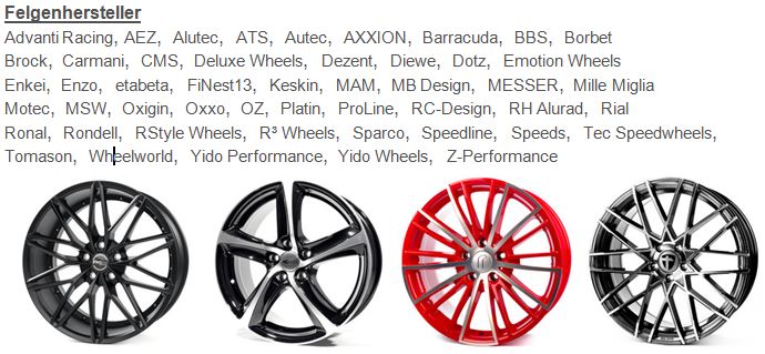 Wir haben unsere Partner erweitert und können Ihnen jetzt Felgen vieler Hersteller anbieten, anbei ein kleiner auszug der Hersteller.